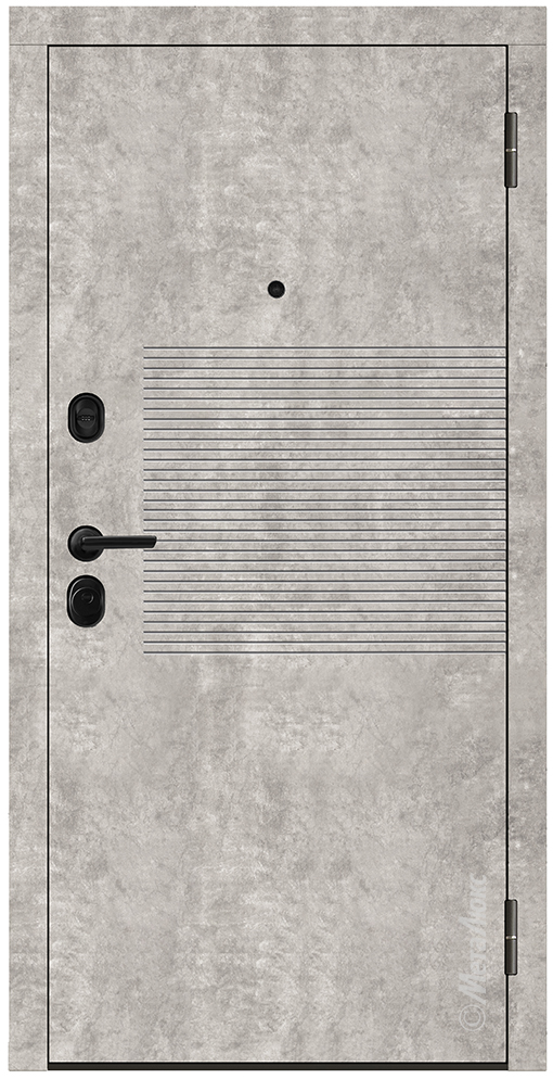 • Полотно двери оснащено мощными противосъемными ригелями диаметром 16 мм (3 шт.)