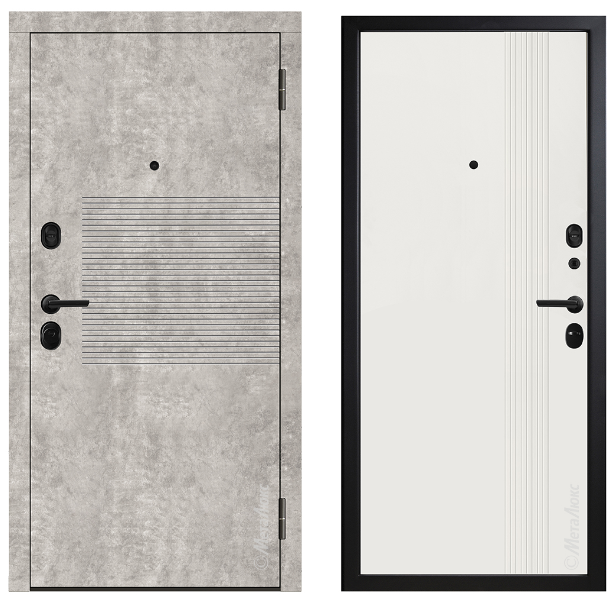 УСТАНОВКА Квартира РАЗМЕРЫ 870, 960*2050 мм ТОЛЩИНА ПОЛОТНА 96 мм ТОЛЩИНА КОРОБА 122 мм ПОКРЫТИЕ МЕТАЛЛА «Муар», цвет черный ТОЛЩИНА МЕТАЛЛА ПОЛОТНА 1,2 мм ТОЛЩИНА МЕТАЛЛА КОРОБА 1,5 мм НАПРАВЛЕНИЕ ОТКРЫВАНИЯ Дверь наружного открывания ОТДЕЛКА СНАРУЖИ Панель МДФ 12 мм, пленка Vinorit,
