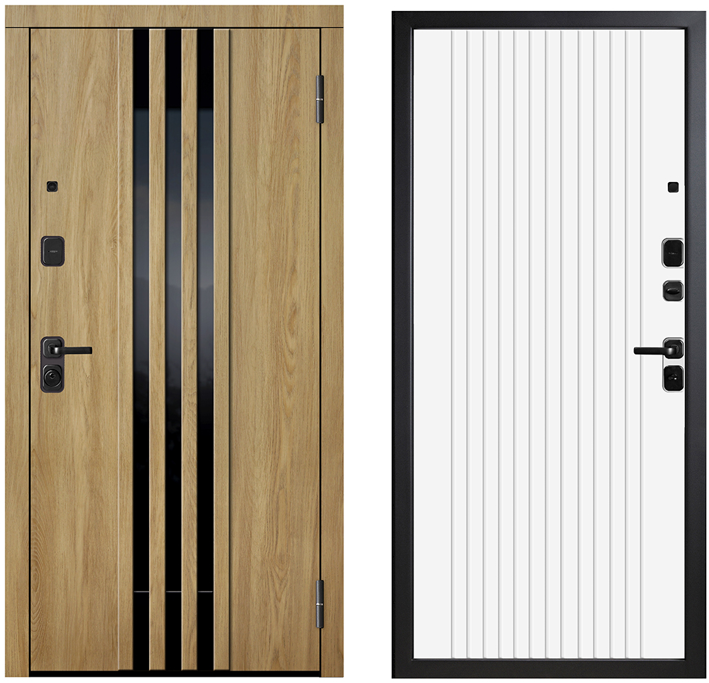 | ОТДЕЛКА СНАРУЖИ | Панель МДФ 12 мм, пленка, «Дуб Мадейра» (96), черная патина/декоративный штапик цвет «Дуб Мадейра» (96), черная патина, вставка из черного глянцевого стекла, черная металлическая вставка |