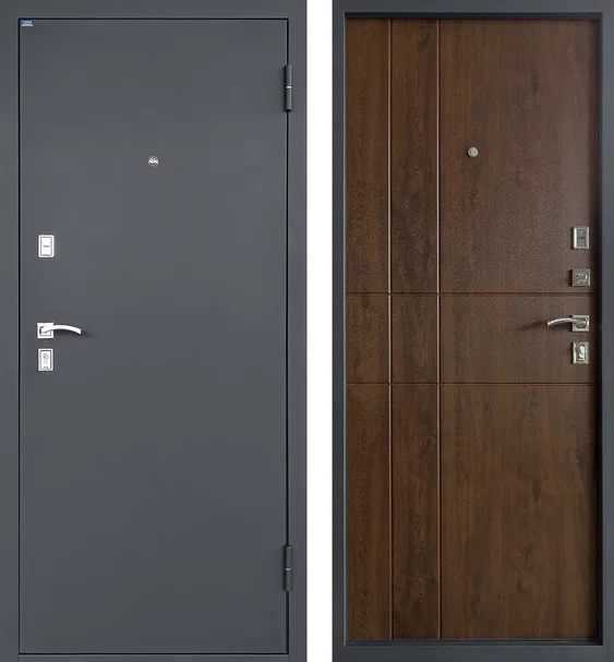 | Замки (2 шт.) | Верхний — сувальдный «ПРОМЕТ», 3 ригеля 16 мм, РФ (4-й класс взломостойкости) | |
