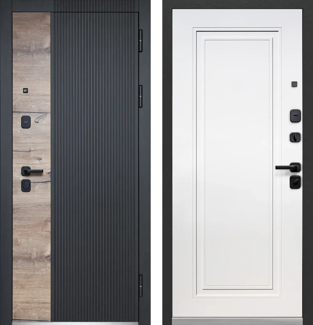 Наружная отделка: фрезерованная МДФ-панель 12мм, цвет вставки «Канадский дуб пацифик», цвет «Сатин черный».