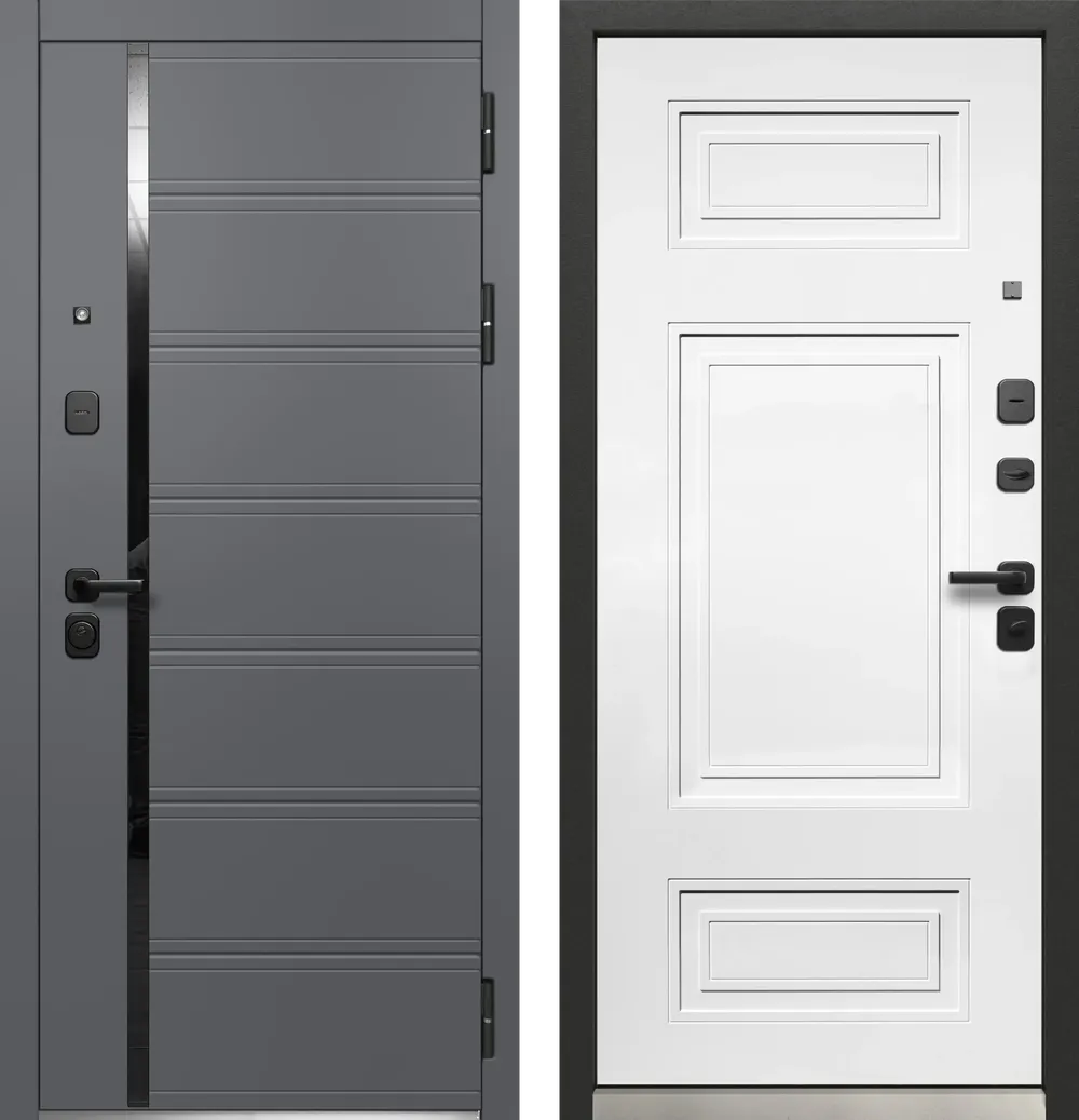 Наружная отделка: фрезерованная МДФ-панель12мм, цвет «Сатин графит», вставка лакобель черный.