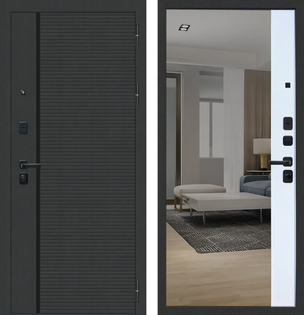 Отделка снаружи: Фрезерованная МДФ-панель 10 мм ФЛП-19 Черная шагрень/пластик черный